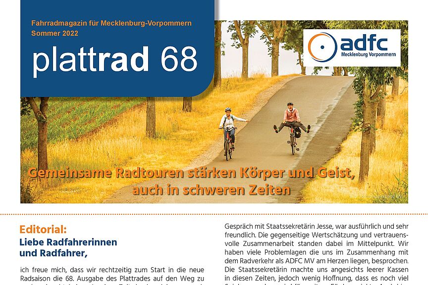Das Magazin «plattrad» wird vom ADFC Landesverband Mecklenburg-Vorpommern e.V. herausgegeben. Es erscheint zwei Mal im Jahr (Mai/Juni) und Dez/Jan) als Beihefter des ADFC-Magazins Radwelt.