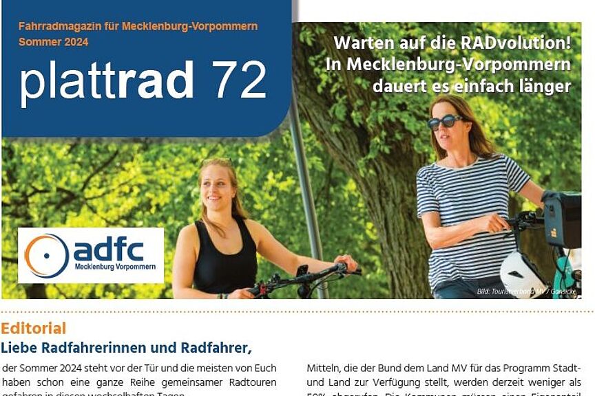 Das Magazin «plattrad» wird vom ADFC Landesverband Mecklenburg-Vorpommern e.V. herausgegeben. Es erscheint zwei Mal im Jahr (Mai/Juni und Dez/Jan) als Beihefter des ADFC-Magazins Radwelt.