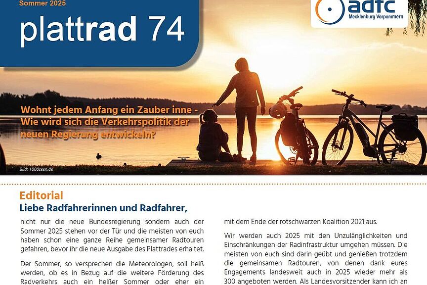 Das Magazin «plattrad» wird vom ADFC Landesverband Mecklenburg-Vorpommern e.V. herausgegeben. Es erscheint zwei Mal im Jahr (Juni und Dez) als Beihefter des ADFC-Magazins Radwelt.
